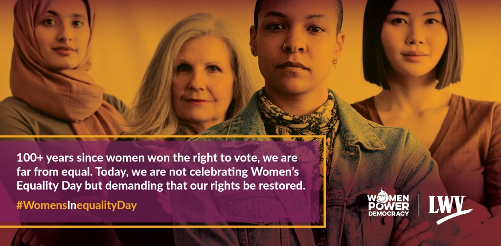 Zonta Club of Birmingham joins the League of Women Voters for its #WomensInequalityDay campaign on Aug 26, 2022 to demand our lawmakers restore & protect rights for women & girls.